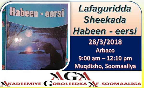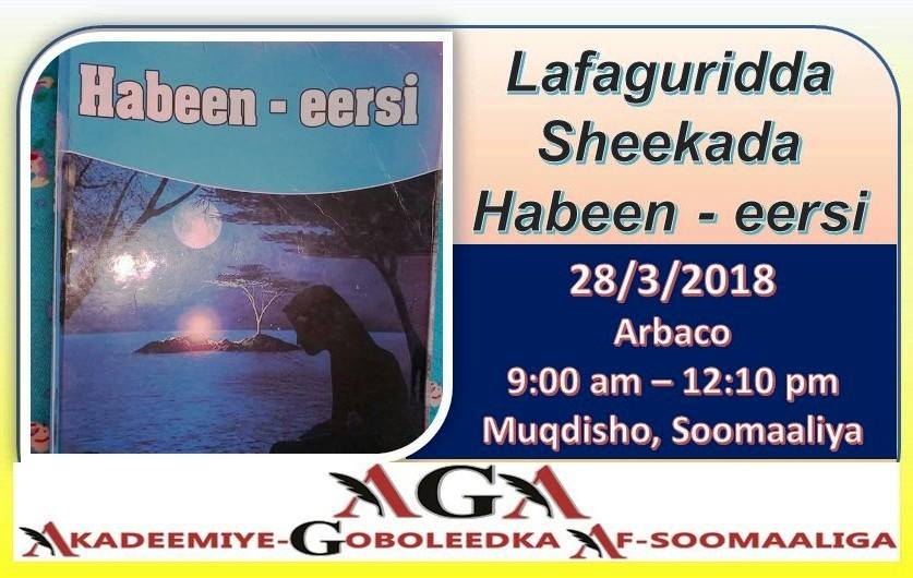 28-ka bisha aynu ku jirno ee Maarso ayaa lagu wadaa in Magaalada Muqdisho lagu qabto madal si gaar ah loogu lafa guri doono buugga la magac baxay Habeen-eersi, buuggaasi oo ay qortay gabar da’ yar ayaa horey waxaa loogu soo bandhigay Magaalooyinka Muqdisho, Garowe, Boosaaso, Hargaysa iyo meelo kale.