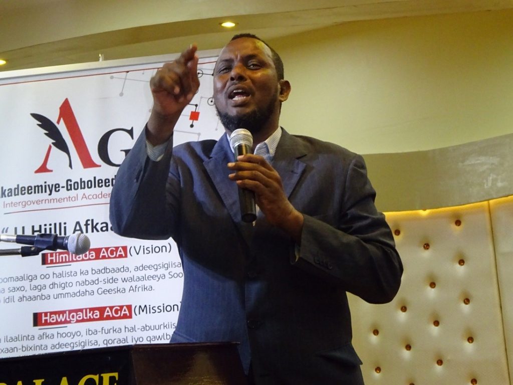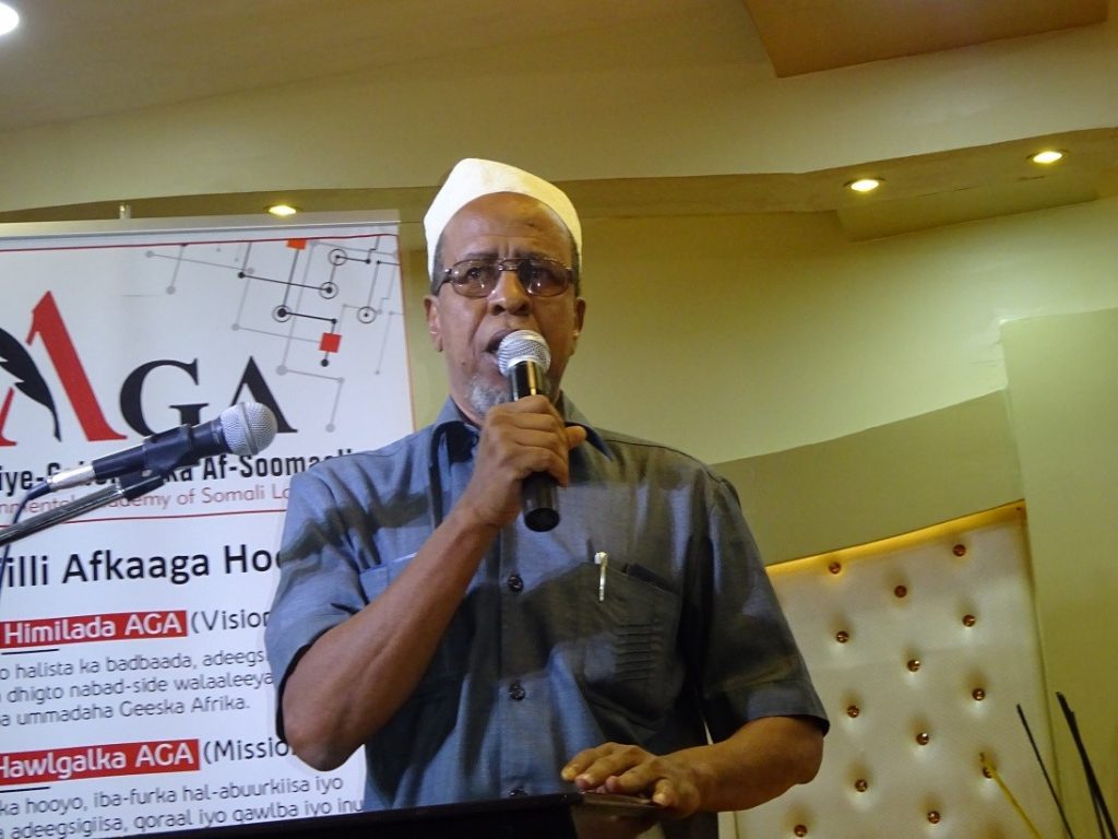 “Shan sanno waa  muddo aad u kooban, hase yeeshee Akadeemiyadaani mudadaas gaaban, oo waliba ay ku shaqaynaysey duruufo qallafsan, sida la’aanta xarun iyo agab shaqo, waxay ku guuleystay waxqabad fara badan oo ku wajahan meel-marinta himiladeeda ah ‘hiilka afka hooyo iyo hal-abuurkiisa’”ayuu yiri Prof. Afrax oo ka-qaybgalayaashii munaasabaddaas u iftiimiyey dhinacyo muhiim ah oo ka mid ah tariikhda AGA iyo sida naf-hurka iyo mutadawacnimada ah ee ay hoggaankeeda iyo hawl-wadeenkeedaba uga go’an tahay  inay naftooda u huraan horumarinta afka hooyo iyo hal-abuurkiisa qiimaha leh.