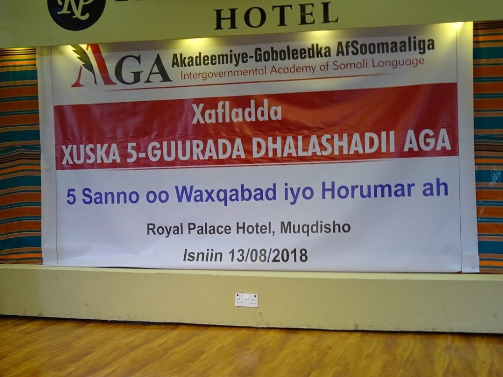 Xaflad baaxad weyn oo loogu tala-galay xuska shan sanno guuradii ka soo wareegtay dhalashadii Akadeemiye-Goboleedka AfSoomaaliga (AGA)  ayaa maanta oo ku beegan 13-ka Agoosto 2018  waxaa lagu qabtay magaalada Muqdisho.