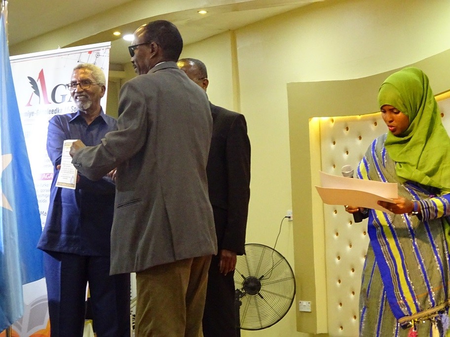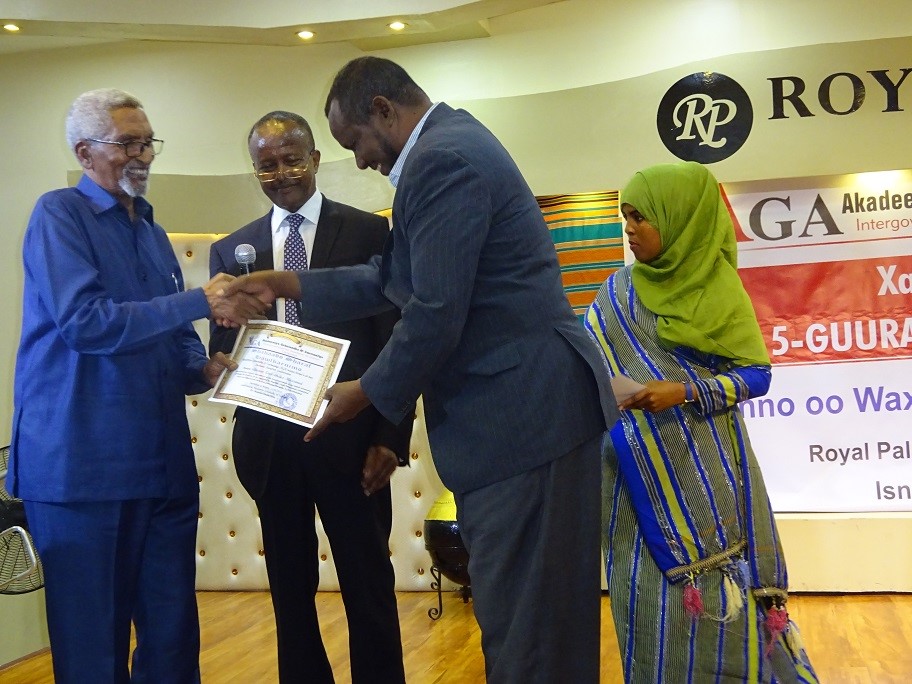 Sidoo kale waxaa halkaas iyaguna shahaadooyin lagu siiyay Xoghaynta Guud ee Akadeemiye-Goboleedka AfSoomaaliga Seynab Xaaji Axmed (Ugbaad), Ku-simaha Gudoomiyaha Golaha Abwaanada Xersi Dhuux Maxamed, Agaasimaha Warbaahinta C/llaahi Xasan, Prof. Cabdalla Mansuur oo ka mid ah maqaawiirta Akadeemiyada, Prof. C/qaadir Ruumi oo ah Wakiilka Akadeemiyada ee wadanka Ingiriiska iyo Iraad Cabdi Aadan oo ah halyey  had iyo goor jecel horumarinta afka Soomaaliga iyo hal-abuurkiisa.