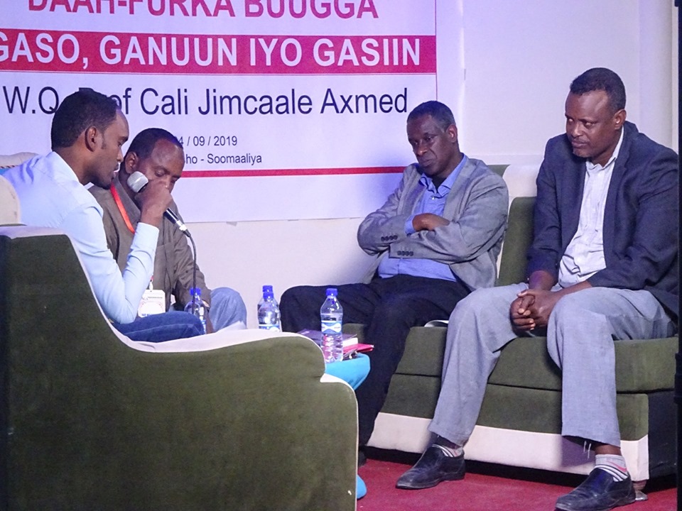 “Gaso, Ganuun iyo Gasiin waa isku dhaf sheeko oo si hal-abuurnimo ah loo xardhay, Af-Soomaaliga ay ku qoran tahay waa mid hodan ah oo in badan oo ka mid ah ay ka sii baxayaan qaamuuska Af-Soomaaliga ee maanta lagu hadlo” ayuu yiri Dr. Xuseen Wadaad oo bulshada Soomaaaliyeed la wadaagay qoraha buugga Prof. Cali Jimcaale Axmed inuu buuggiisa u soo xushay ereyo asal ah oo intooda badan sii socda!