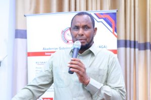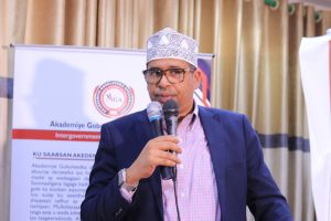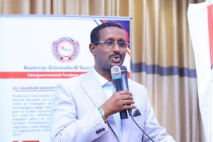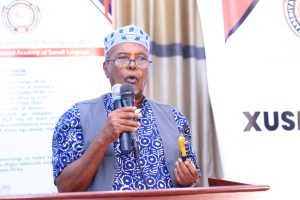 Guddoomiyaha Akademiya Goboleedka Macallin Saciid Axmed oo munaasabadaasi uga qaybqaatay dhanka qadka ayaa faahfaahin ka bixiyay sida uu ku yimid xuska maalinta afka hooyo, wuxuuna iftiimiyay dadaalka ay Akademiyadu ugu jirto noolaynta iyo horumarinta af Soomaaliga, isagoo caddeeyay inay AGA u qorshaysan tahay sidii ay uga mira dhalin laheyd barnaamijyada u degsan sida “Adeegsiga af Soomaaliga, naxwaha,, tajumaadda & ereybixinta, qaamuusaynta iyo suugaanta”.