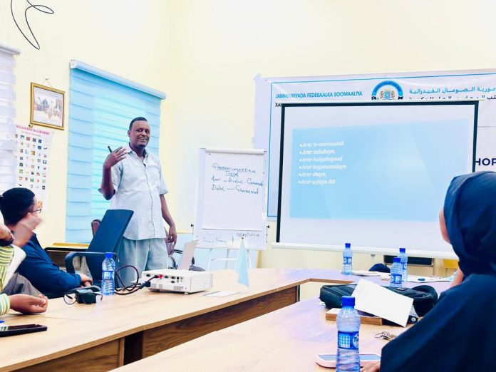 Qaar ka mid ah hawlwadeennada Akademiya Goboleedka Af Soomaaliga oo halkaasi ka hadlay ayaa soo dhaweeyay cilmibaaaristaas uu soo diyaariyay madaxa tababbarada Akademiya Goboleedka Af Soomaaliga.