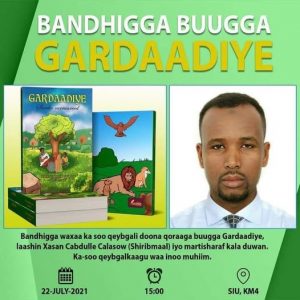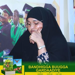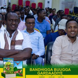Bandhig aad u qurux badan oo loogu tala-galay daahfurka buugga Gardaadiye, ayna ka soo qeyb-galeen masuuliyiin kala duwan, siyaasiyiin, aqoonyahanno, qorayaal, bahda naadiyada akhriska iyo qoraalka, hal-abuurro, dhallinyarada wax ka barata jaamacadaha G/Banaadir iyo marti sharaf kale, ayaa shalay oo ku beegneyd 22/7/2021, waxaa lagu qabtay magaalada Muqdisho.