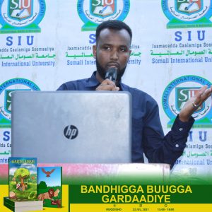 Intaasi kadib, waxaa cod baahiyaha lagu soo dhoweeyay qoraagga buugga Gardaadiye Al-ustaad Laashin Xasan Cabdulle Calasoow (Shiribmaal), waxaana uu si qoto dheer uga warbixiyay macluumaadka uu xambaarsan yahay buuggiisa, isaga oo ka qeybgalayashii bandhigaasi la wadagay sababihii ku dhaliyey in uu buugaasi soo saaro.