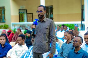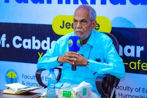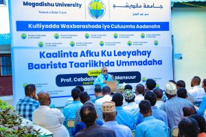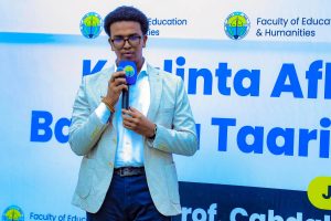 Madaxa Waaxda Naxwaha ee Akademiya Goboleedka Af Soomaaliga (AGA), Barasare Cabdalla Cumar Mansuur ayaa 17/12/2025, waxa uu muxaadaro ku saabsan “Kaalinta Afku ku leeyahay Baarsita Taariikhda Ummadaha” uu u jeediyay qaar ka mid ah maamulka jaamacadda, macallimiinta iyo ardayda Kulliyadda Waxbarashada iyo Culuumta Aadanaha ee Jaamacadda Muqdisho.