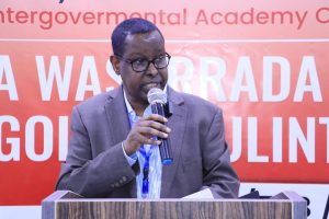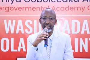 Guddoomiye kuxigeenka Akademiya Goboleedka Dr. Xuseen Maxamed Cabdulle (Wadaad) ayaa ugu horreyntii halkaasi ka soo jeediyay hadal isugu jiray soo dhaweyn, mahadnaq & ujeeddada shirka.