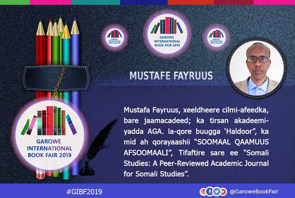 Guddoomiyaha Akadeemiye-Goboleedka AfSoomaaliga (AGA) Prof. Maxamed Daahir Afrax ayaa si rasmi ah loogu casuumay ka qeyb-galka iyo hadal jeedinta bandhigga buugaagta Garowe, bandhiggaasi oo halku-dhig looga dhigay “Aqooni waa Iftiin” ayaa magalaada Garowe waxa uu ka dhici doonaa inta u dhaxeysa 23-25 Luulyo 2019-ka.