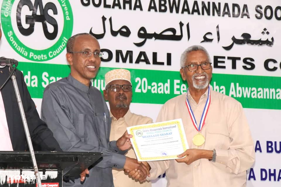 Shahaadadaas waxaa Akadeemiye-Goboleedka AfSoomaaliga u guddoomay Prof. Mustafa C/llaahi Feyruus oo ka mid ah madaxda Akadeemiyadaas, shahaado sharaftaas ayaa Akadeemiye-Goboleedku waxay ku mutaysatey dadaalka ay ugu jirto daryeelka afka hooyo iyo hal-abuurkiisa.