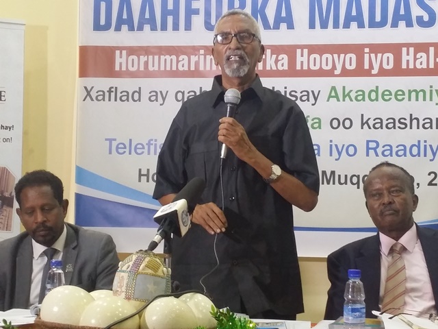 Prof. Mustafa C/laahi Feyruus oo ka mid ah masuuliyiinta Akadeemiyada AGA iyo Wakiilka Akadeemiyadaasi ee K/Galbeed Prof. Maxamed Cali Kalaay ayaa halkaasi ka soo jeediyay hadalo u badnaa Iftiiminta hawlaha ay qaban do