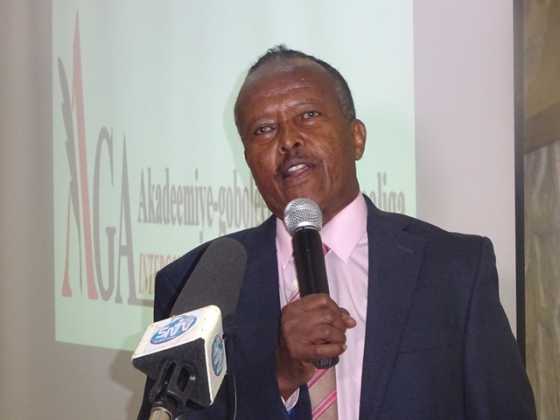 Gudoomiyaha Akademiye-Goboleedka AfSoomaaliga Prof. Maxamed Daahir Afrax oo khudbad xiiso badan halkaas ka soo jeediyey ayaa si cilmiyeysan uga hadlay taariikhda iyo heerarkii ay soo martay Akademiyada AGA, waxaana uu sheegay sababtii loo unkay AGA inay ahayd sidii halista looga bad-baadin lahaa afka hooyo looguna hawlgali lahaa horumrintiisa, isagoo intaasi raaciyay Himilooyinka Akadeemiyadu inay ka mid tahay sidii looga faa’iideysan lahaa awoodda AfSoomaaligu u leeyahay inuu ahaado Nabad-side walaaleeya dadka Soomaaliyeed dhexdooda iyo iyaga iyo dadyowga kale.