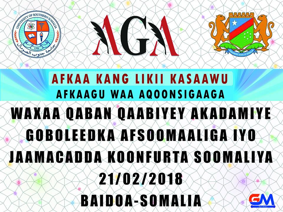 • Shirkii 28 Diseember 2017 ee lagu Daah-furayay Madasha AGA ee horumarinta afka Soomaaliga iyo Hal-abuurkiisa