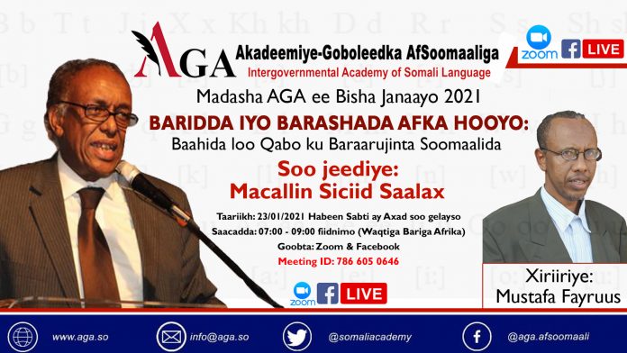 Akadeemiye-Goboleedka AfSoomaaliga (AGA) waxa ay qeybaha kala duwan ee aqoonyahanka, waxgaradka iyo dhallinyarada jecel afka, dhaqanka iyo hal-abuurka ay ku martiqaadaysaa in ay kala soo qeyb-galaan Madasha AGA oo qabsoomaysa bisha Janaayo ee sannadka 2021-ka.
