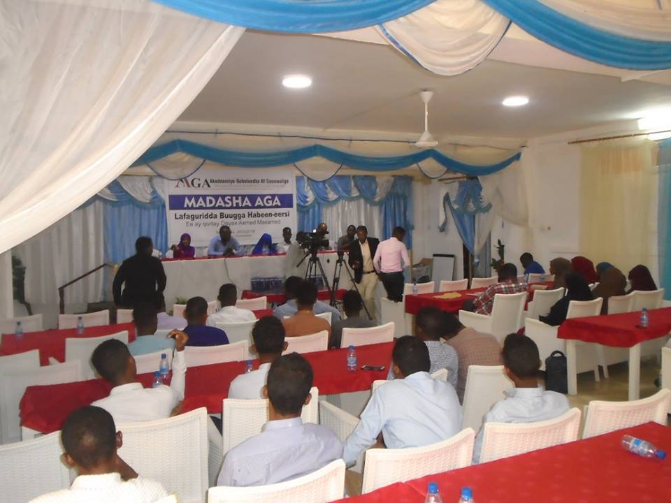 Madal-cilmiyeed si qurux badan loo soo agaasimay laguna gorfeynayay  buugga la magac baxay Habeen-eersi   ee ay qortay Dayax Axmed Maxamed  oo ah gabar dhallinyaro ah oo ka tirsan Akadeemiye-Goboleedka AfSoomaalia (AGA) ayaa maanta oo ku beegan 28/3/2018  waxaa  lagu qabtay Magaalada Muqdisho.