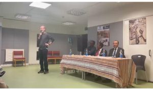 Waxaa isna ka hadlay xafladda Mr Mike Phipps, oo bare ka ah dugsiyada magaalada Bristol. Mr Mike wuxuu la wadaagay jaalliyadda maahmaahyada af Soomaaliga, isagoo ku hadlaya af Soomaaliga. Waxaa jirta in xafladda laga soo jeediyay weydiimo la xiriira afka iyo AGA , waxaana weydiimahaas ka jawaabay wakiilka AGA ee dalka Ingiriiska Prof. Cabdulqaadir Ruumi.