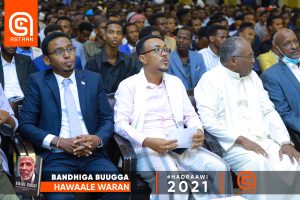 Sidoo kale, waxaa xafladdaasi ka hadlay Guddoomiyaha Akadeemiye-Goboleedka AfSoomaaliga (AGA) Dr. Maxamed Daahir Afrax oo dhinaca qadka uga qeybgalay munaasabaddaasi, Macallin Saciid Saalax Axmed oo ah Wakiilka AGA ee Waqooyiga Ameerika iyo qoraa Boobe Yuusuf Ducaale, kuwaasi oo ka sheekeeyay aqoonta ay u leeyihiin abwaan Hadraawi, iyaga oo iftiimiyay in si farshaxannimo ah loo qorey murtidii ka soo maaxday maskaxda uu Alle ku mannaystay abwaankaas.