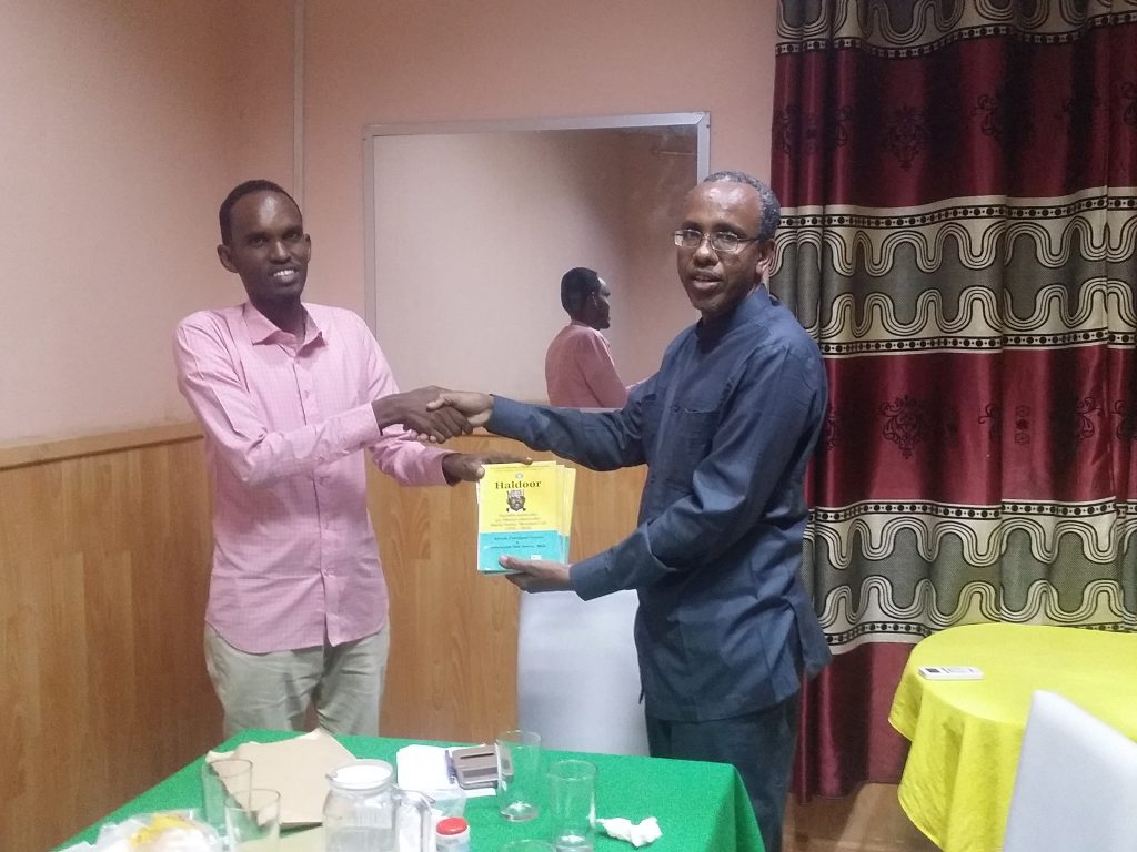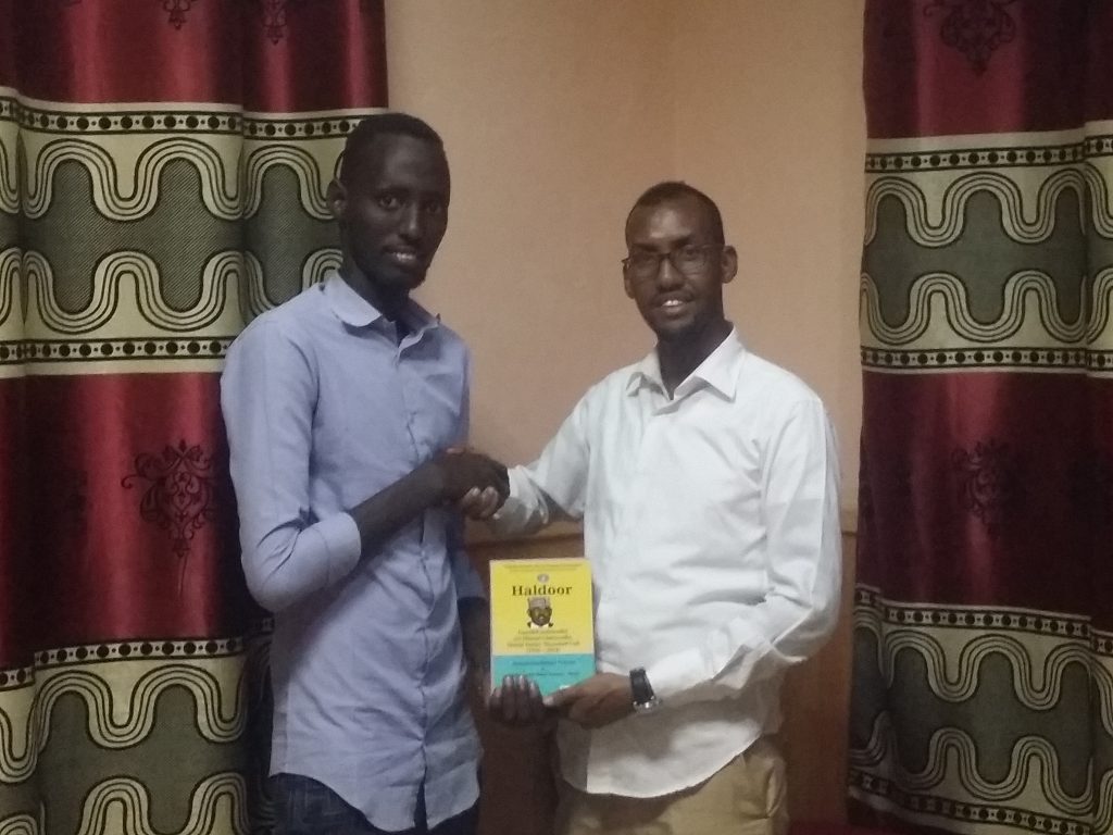 Akadeemiye-Goboleedka AfSoomaaliga (AGA)  ayaa guddoonsiisay naadiyada  Akhriska iyo Qoraalka nuqulo ka mid ah  buugga Haldoor ee ka  hadlayo taariikh nololeedka iyo dhaxal cilmiyeedkii Guddoomiyihii Guddigii qoraalka farta Soomaaliyeed Danjire Shariif Saalax Maxamed Cali.
