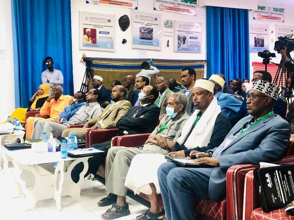 Shirkan oo lagu qabtay xarunta Akadeemiyada Cilmiga, Fanka iyo suugaanta waxaa ka soo qayb-galay madax sare oo ka socotey dowladda Soomaaliya, ururrada bulshada iyo aqoonyahanno daneeya arrimaha AfSoomaaliga.