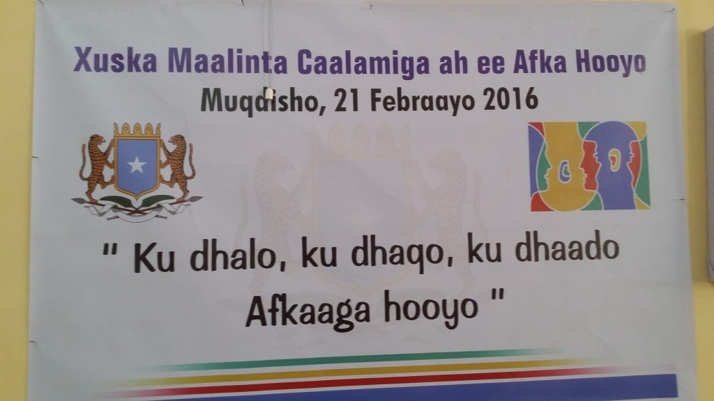 Ka dibna Naadiga PEN ee Qalinleyda iyo Hal-abuurka Soomaaliyeed ayaa wada gaarsiiyey geyiga Soomaalida ee Geeska Afrika, Caasimadda Soomaaliya ee Muqdisho waxaa laga bilaabay 2007, waxaana hormuud ka ahaa Naadiga Somali PEN ee Koofurta Soomaaliya, Maantana, nasiib-wanaag, way yar tahay Magaalo weyn Soomaaliyeed oo aan laga xusayn munaasabaddan, Inta badanna waxaa hormuud ka ah Akadeemiye-Goboleedka Af-Soomaaliga (AGA).