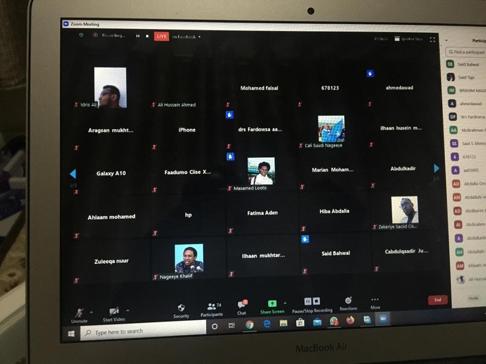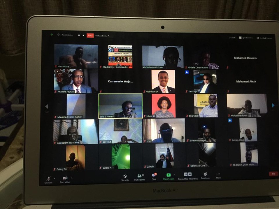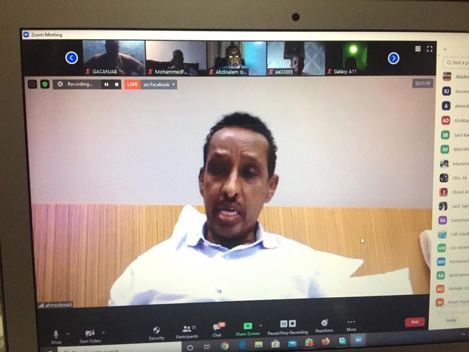 Dadkii aaladda Zoom-ka uga qeyb-qaatay ayaa waxaa ka mid ahaa Wasiirka Arrimaha Dibadda ee Dawladda Federaalka ee Soomaaliya Md Axmed Cawad Ciise oo bogaadiyey Akademiye-Goboleedka iyo xeel-dheerayaashii casharrada xiisaha badnaa halkaa ka soo jeediyey.